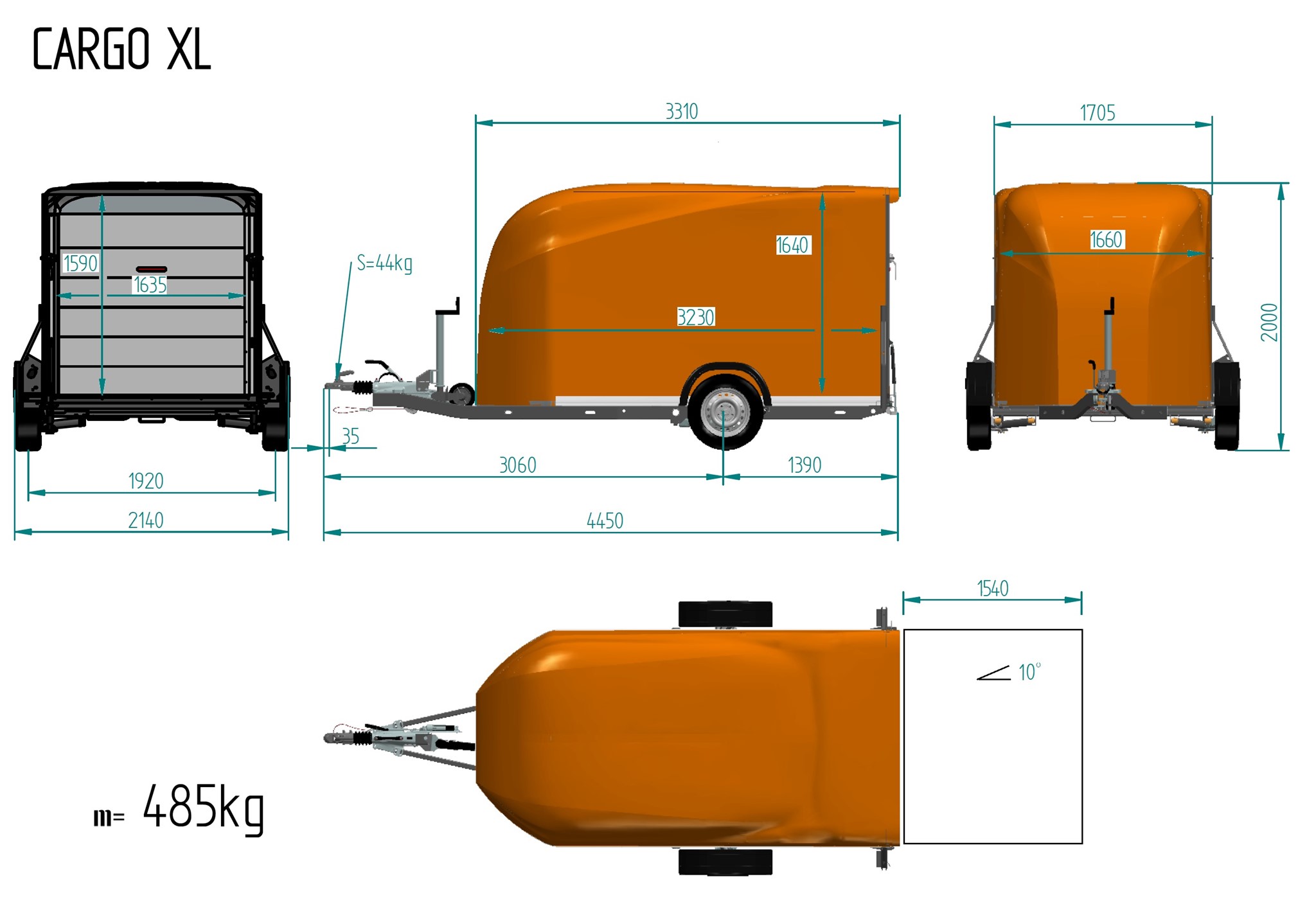 - Eigengewicht 485 kg, Nutzlast 845 kg