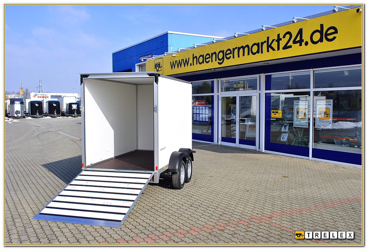 Kofferanhänger Tieflader Tandemachser - Plywoodaufbau mit Heckrampe