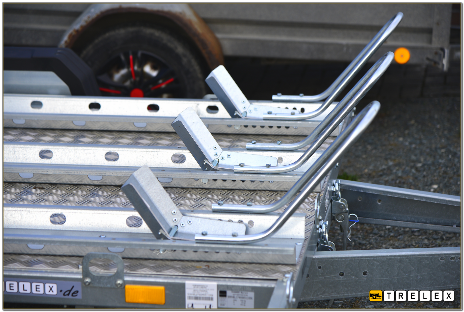 - 1 Auffahrschiene Stahl vz., seitlich unter Ladeboden verstaut