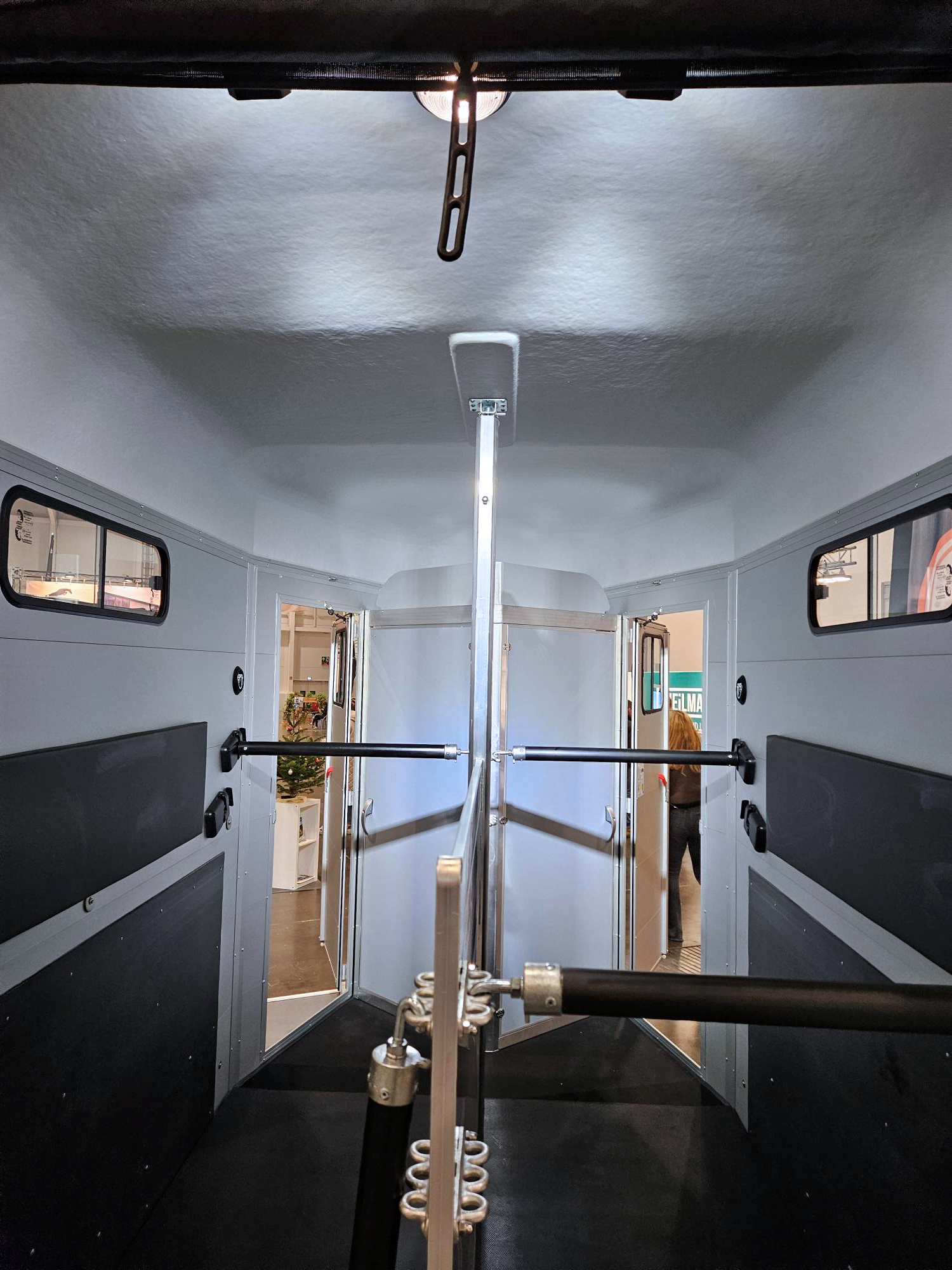 - Alu-Trennwand herausnehmbar, Front- und Heckteil schwenkbar um zentralen Baum