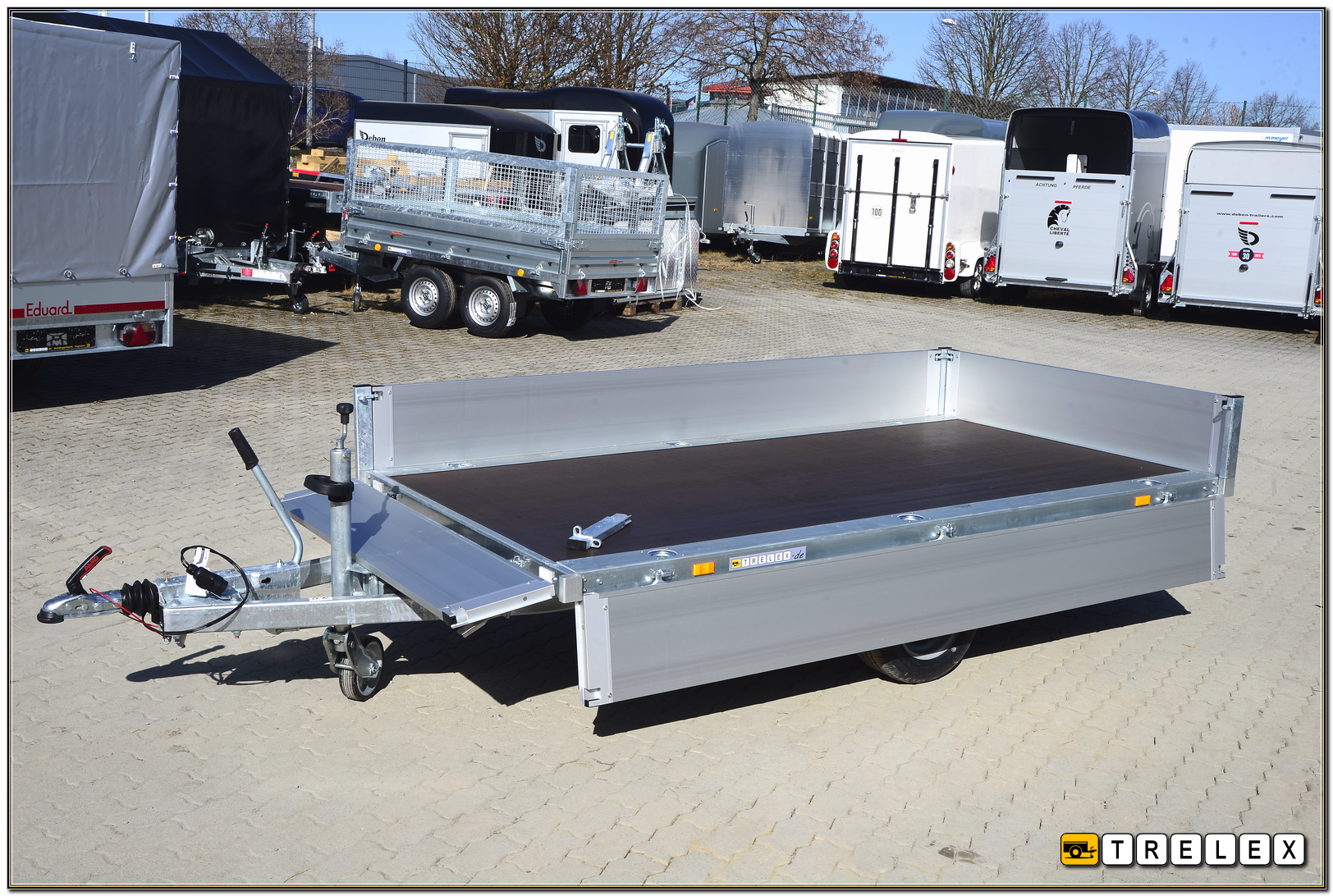 - Rahmen mit V-Deichsel geschlossene Hohlprofilkonstruktion verschweißt und komplett im Tauchbad feuerverzinkt